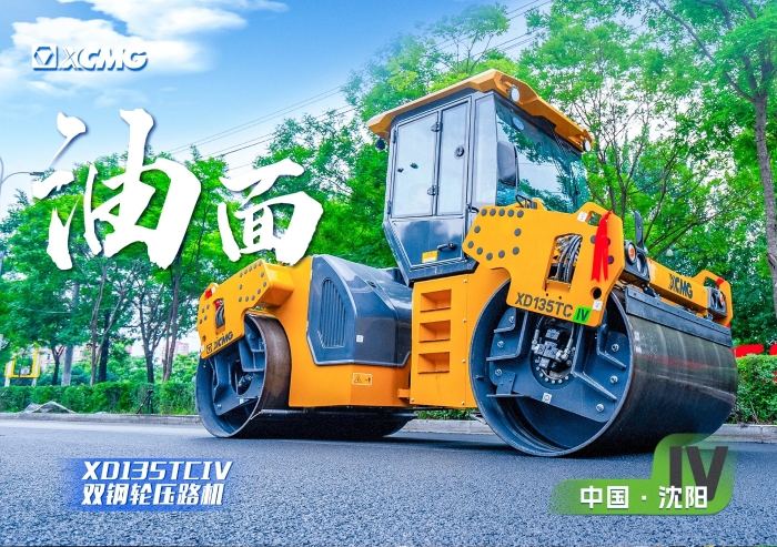 攤鋪工作結束后,由徐工XD135TCIV進行壓實。這款13噸雙鋼輪壓路機作為油面的當紅明星,采用雙頻雙幅振動系統,前后輪可獨立振動;同時,其內置的軟起軟停功能使壓路機起步、停車均平穩進行,避免路面、擁包,可進一步提升路面壓實質量,在提高路面平整度方面效果拔群。