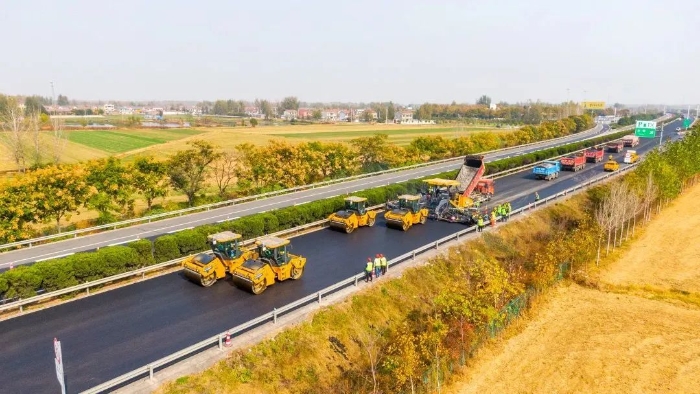 相對普通公路而言,高速公路作為高等級路面,在各項指標上都有著更為嚴苛的施工要求。且此次高速公路改擴建工程為半封閉施工,連霍高速又是貫穿中國東西走向的交通要道,考慮到交通壓力和行車安全性,施工方選擇了徐工成套道路機械作為本路段瀝青攤鋪工程的主力軍,憑借超高的施工效率和完善的防撞系統,保證施工安全性的同時,大大縮短了工期,推動該路段快速實現通車。