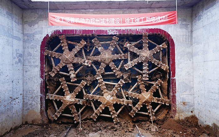 國內首臺全液壓驅動矩形頂管機XDT50*70承頂的鄭州地鐵寺東孫站出入口頂管工程順利貫通。