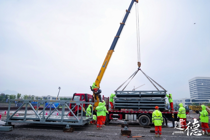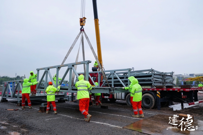 本次演練以山洪爆發(fā)、泥石流、臺(tái)風(fēng)等極端氣候造成的道路內(nèi)澇深坑積水、道路大面積塌方、公路橋梁沖毀以及危化品運(yùn)輸車(chē)泄漏等特殊情況為背景,模擬公路水毀阻塞交通、橋梁垮塌中斷交通,演練隊(duì)伍嚴(yán)正執(zhí)行,在規(guī)定時(shí)限內(nèi)迅速完成桁架拼裝、橋面鋪設(shè)、橋梁落座,完成公路應(yīng)急裝備漕渡任務(wù)。