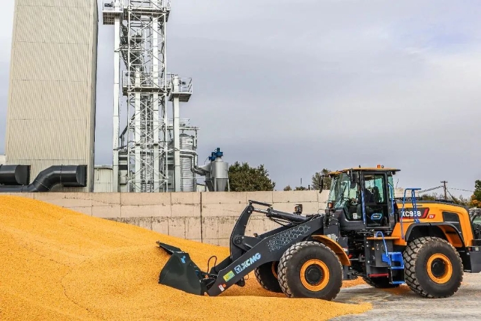 眼下,在歐洲某農產品加工廠,徐工XC968-EV純電動裝載機正迅速揮動大臂,翻動室外晾曬的谷物。