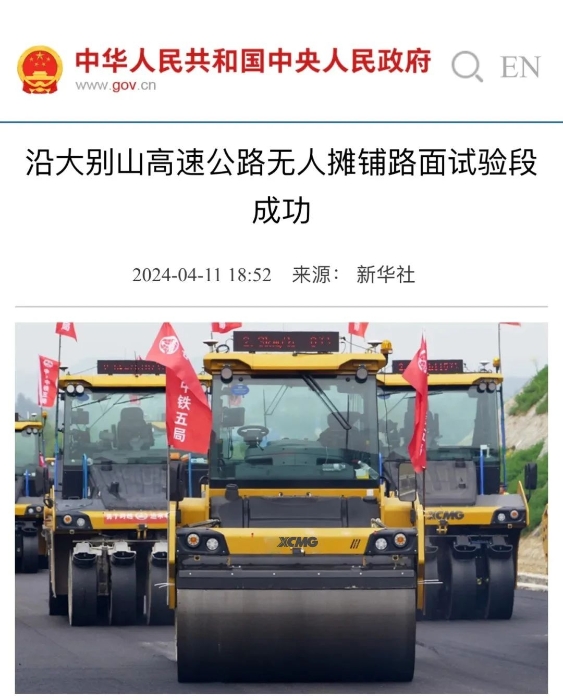 此次試驗段是沿大別山高速公路雞公山至商城段JSSG-2標(biāo),首次運用無人攤鋪+北斗高精定位智能系統(tǒng),完成全線首段路面中面層試驗段鋪筑。