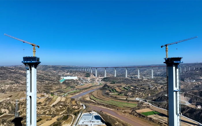在廣袤的隴東地區(qū),寒風(fēng)凜冽,穿過層層大霧,俯瞰馬蓮河特大橋,似玉帶嵌入黃土高原,矗立河道旁的橋墩似根根“擎天柱”,徐工S1系列塔機(jī)正如火如荼加速建設(shè),用奮斗的激情創(chuàng)造橋梁施工典范。