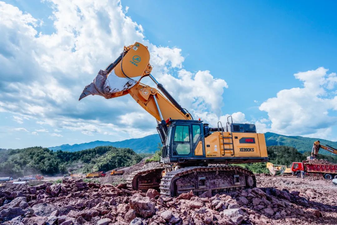 而另一款吸睛產品——徐工XE890KS巖石臂,專為非爆破開挖設計,配備百噸級動力,瞬時爆發力強,挖掘力更大,重載作業更有勁。針對履帶底盤、配重、使用能效水平等方面進行全方位提升,配備專屬作業機具“鷹鉤臂”,在非爆破礦山、地基開挖等作業場景中有著得天獨厚的優勢。
