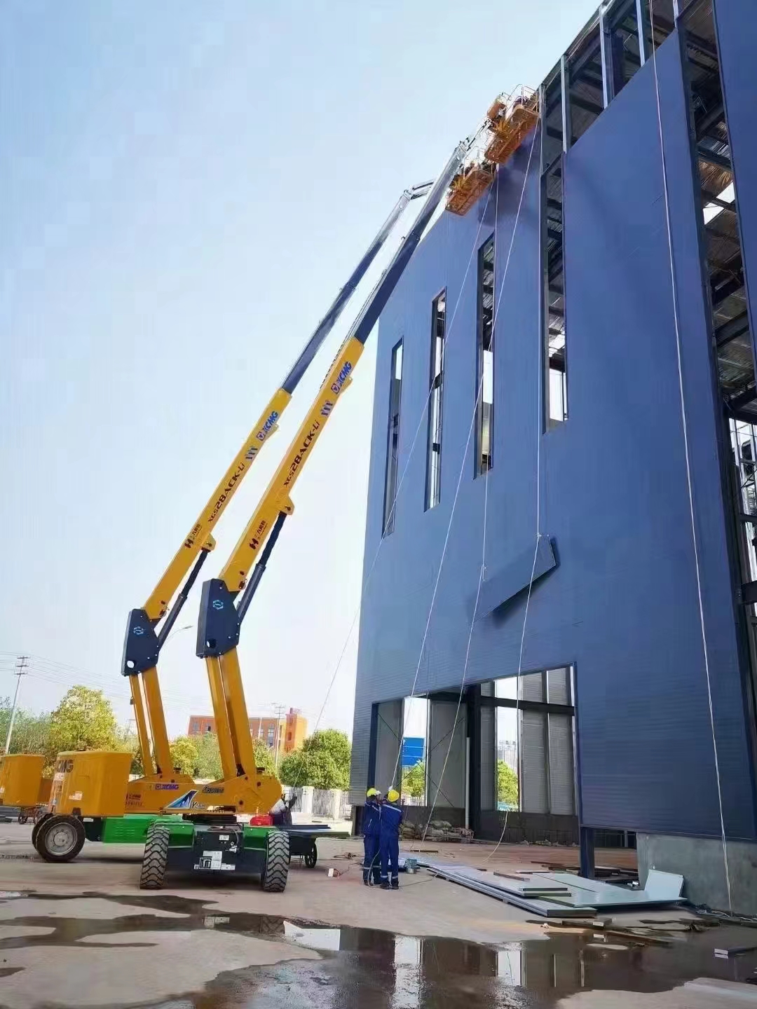 徐工兩臺XGS28ACK-Li正在緊鑼密鼓的進行外立面的安裝工作,憑借其具有自平衡功能的伸展機構以及大容量的鋰電池,既保證了施工的安全,又提高了工作效率,獲得了施工方的一致好評。