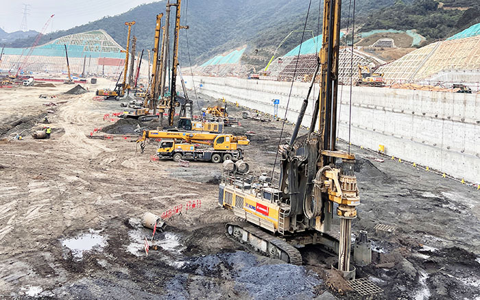 建設支護樁4500條,施工樁徑1-2.2米,孔深25-50米,入巖深度27米……比成孔速度、賽成樁質量,徐工交出了一份讓施工方滿意的答卷。項目負責人贊不絕口: