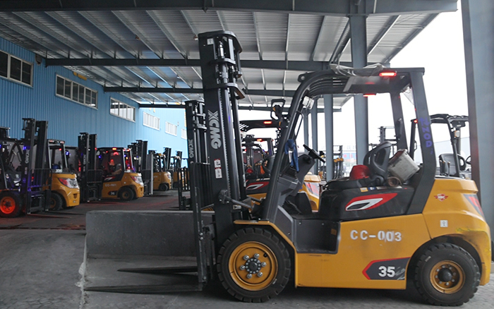 走進輪胎企業的車間,徐工孔雀叉車忙碌的身影隨處可見。
