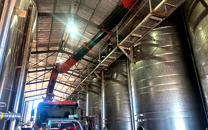 在某海外釀酒工廠的設備轉運項目中,徐工隨車起重機憑借其卓越的性能和可靠的安全保障,順利完成了一系列復雜的吊裝任務,為工廠的生產線升級提供了堅實支持。