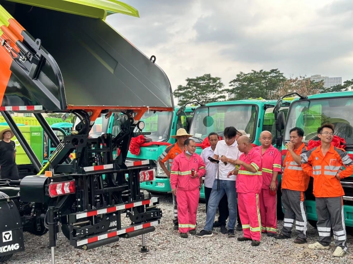 近日,徐工成功向深圳玉意環保產業有限公司交付了10余臺定制化涂裝的純電動自裝卸垃圾車,批量交車儀式在深圳市寶安區隆重舉行。
