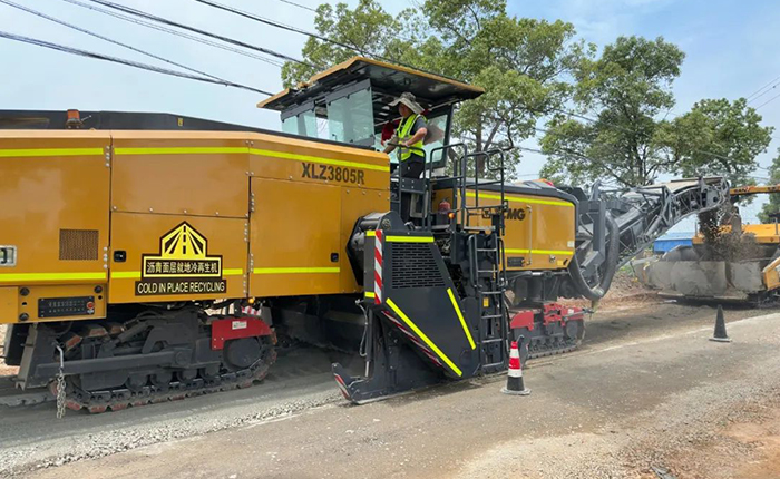 為了徹底修復(fù)路面,減輕交通壓力,盡快恢復(fù)通車,同時降低施工成本,經(jīng)過施工方案論證,采用可一次再生整幅車道的徐工XLZ3805R冷再生機(jī)的高效就地冷再生技術(shù)進(jìn)行大修。