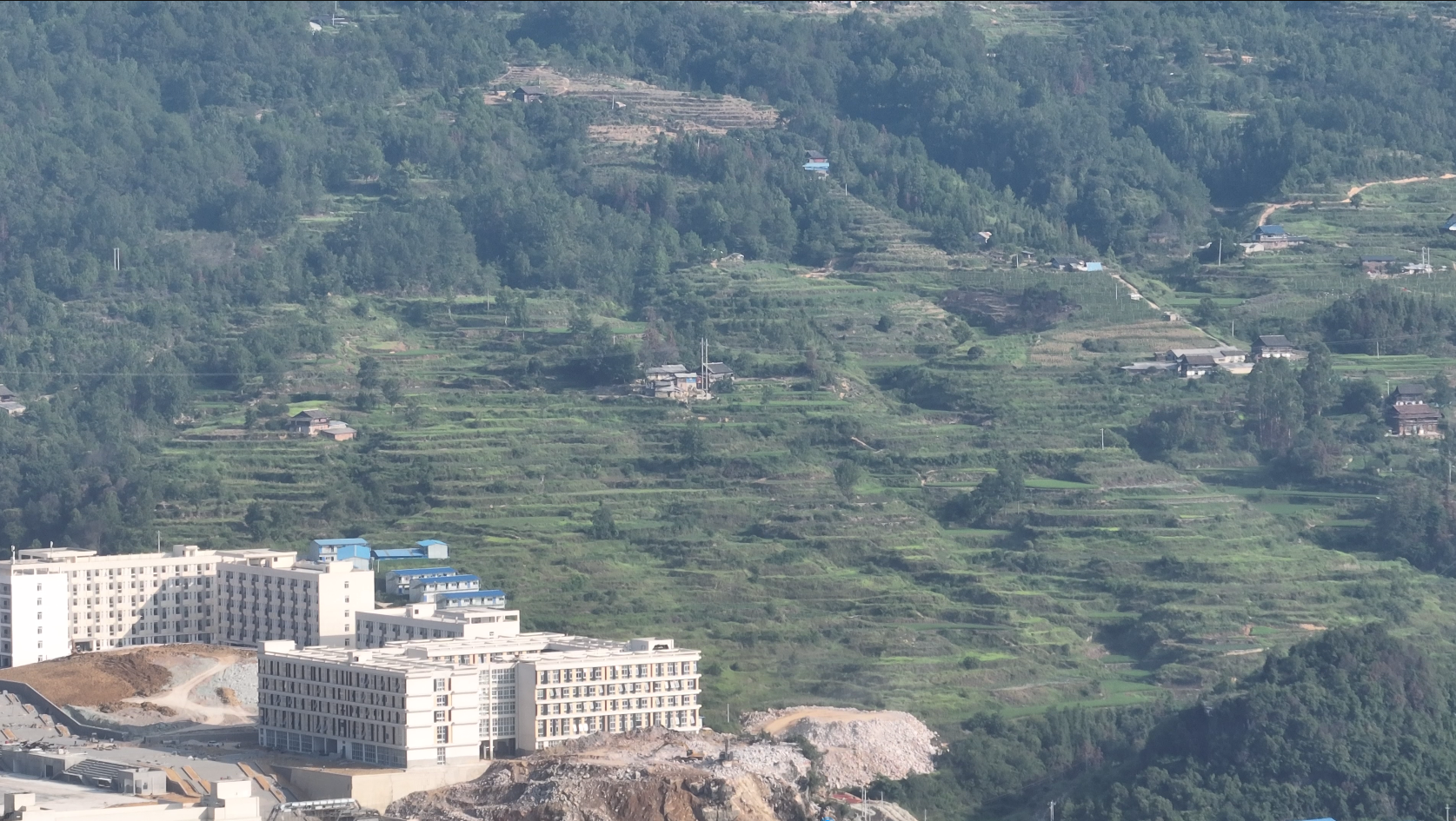 密不透風的山林將正在作業的挖掘機完全擋住,只聽見破碎錘的聲音。