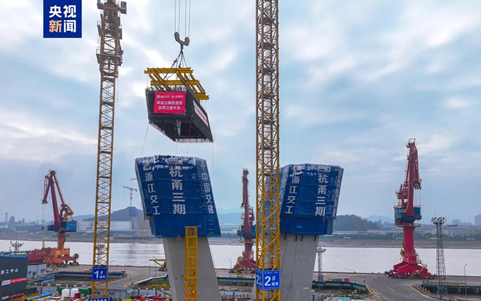 近日,在甬江特大橋施工現(xiàn)場,徐工超大塔XGT3000-120S揮舞鐵臂,67噸的鋼筋部品被穩(wěn)穩(wěn)吊起,精準(zhǔn)安裝,徐工助力這一世界級跨江大橋建設(shè)提速加碼。