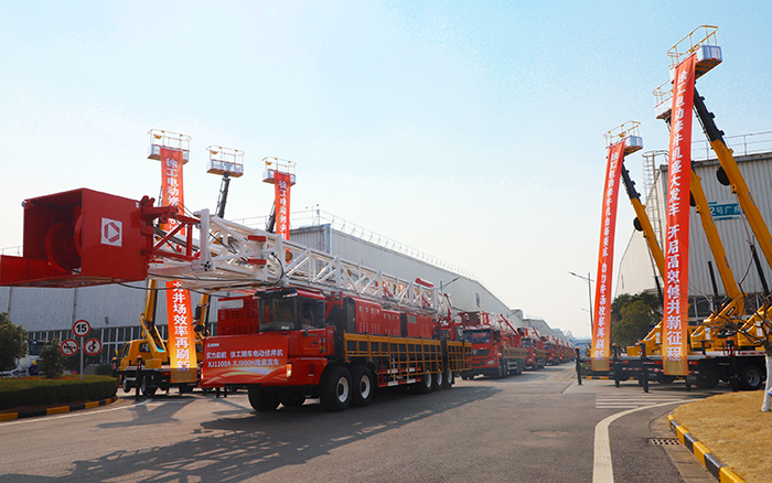 徐工XJ900和XJ1100電動修井機作為本次發車的主角亮點紛呈,憑借其卓越的作業能力,能夠輕松應對各類復雜的修井作業需求;在設計上,它們充分考慮了安全性與高效性;采用先進的控制系統,可適應不同惡劣工況,精準操控每一個動作,大大提高了作業效率,降低了操作風險,確保在各類環境下都能穩定運行。同時,穩固的機身結構保證了在高強度作業時的穩定性,為油井維修工作提供堅實保障。此次批量發車意義非凡。它不僅是徐工隨車在修井機領域研發與生產實力的有力證明,更是對整個行業發展的重大推動。