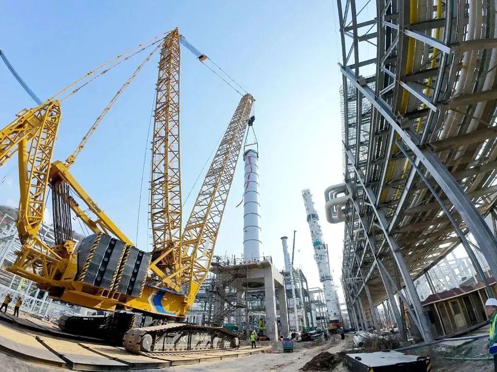 在中油一建某精細(xì)化施工基地,全球最大噸位履帶起重機(jī)XGC88000進(jìn)行了超強(qiáng)“鋼鐵舉重”。