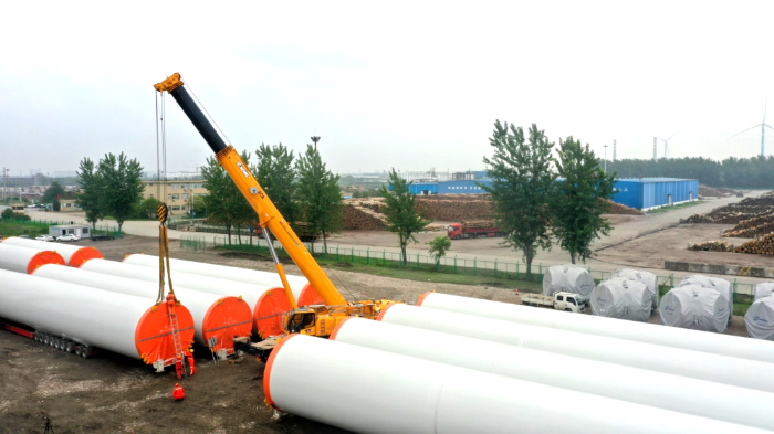 在繁忙的港口,長40米、重100噸的風(fēng)力發(fā)電塔筒擺放整齊,等待著一次關(guān)鍵的騰挪,吊裝空間局促——塔筒擺放距離較近,蕩距空間嚴(yán)重受限,這是對(duì)起重機(jī)性能與操控的極致考驗(yàn)。徐工G2代起重機(jī)XCA200G8-1從容入場,以實(shí)力宣告:空間,絕非限制。