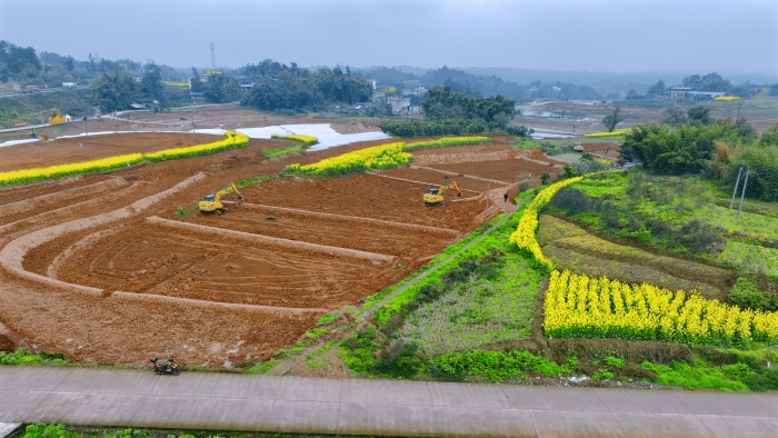 洪雅向東90公里,是仁壽縣,作為四川省產糧大縣,仁壽曾因田塊細碎導致機械化率不足。在5000畝的高標準農田建設中,項目方集結18臺徐工挖掘機,以“日均30多畝”的速度搶抓工期。
