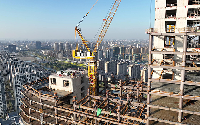 XGL630-50S憑借高效、精準的吊裝性能、出色的操控微動性,克服施工現場扭轉不規則、樓板不連續、尺寸突變、構件間斷等問題,高效完成樓承板、鋼結構和核心筒主體結構等建筑材料的吊裝重任,給江南煙雨帶來了一抹溫暖亮麗的色彩。