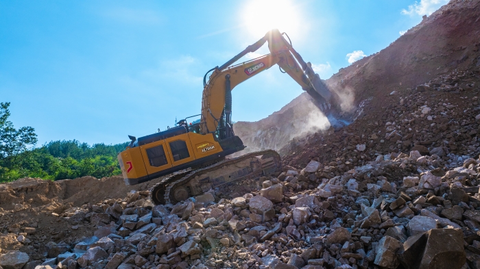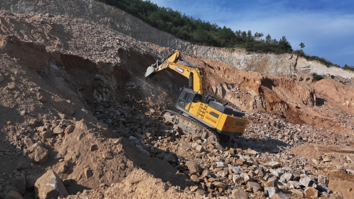 湖北黃岡礦區,機械轟鳴震徹山谷。今年初,這片年產能百萬噸的露天石礦山迎來一位新的“攻堅主力”——徐工XE750GK履帶式液壓挖掘機,以其超強實力,為礦山新質生產力發展注入澎湃動能。
