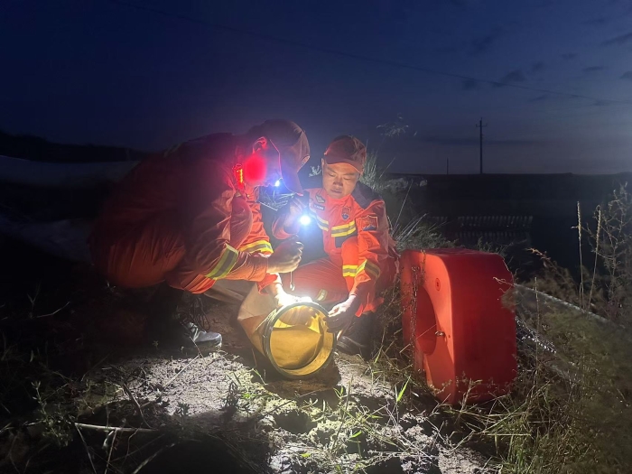 10名隊員輪班倒,迅速進入“24小時連軸轉”狀態。沒有一絲猶豫,他們踩泥漿、涉深水,卷起褲管開始鋪設水帶,科學調整作業方案。為避免抽水作業沖刷壩體,他們利用橡皮艇涉水劃到農田中間固定水帶,以專業判斷化解潛在風險,彰顯科技救援的力量。