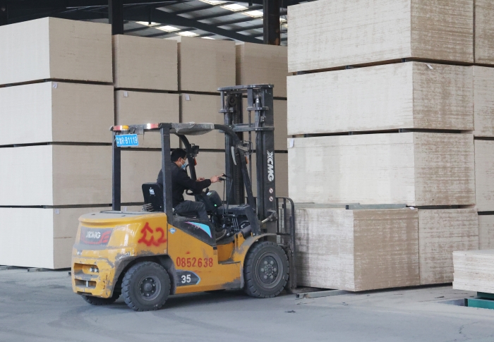 在山東菏澤某大型板材廠內,二十余臺徐工鯤鵬叉車、新E叉車組成的"黃金戰隊",以高效穩定的作業表
