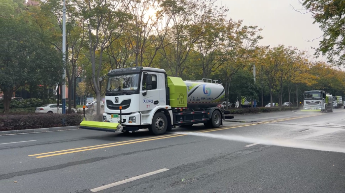 “徐工新能源裝備沒有尾氣排放和噪音污染,為城市環境改善和作業人員健康提供了有力保障。”現場負責人表示,“同時水箱容量大,在作業過程中,無需頻繁停下來進行補給,大大提高了作業的連續性,提升了整體作業效率。”