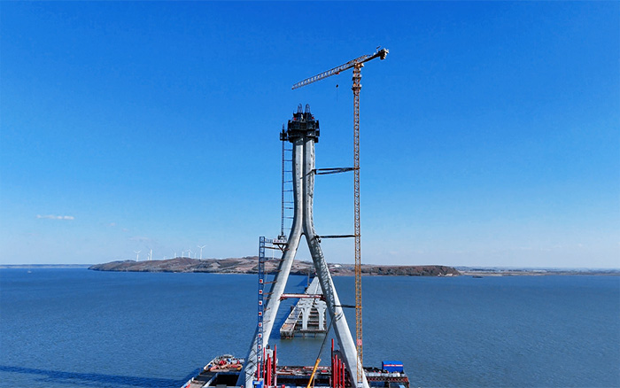 130余米的徐工XGT7528A-18S1塔機刺破蒼穹助力大橋主塔封頂