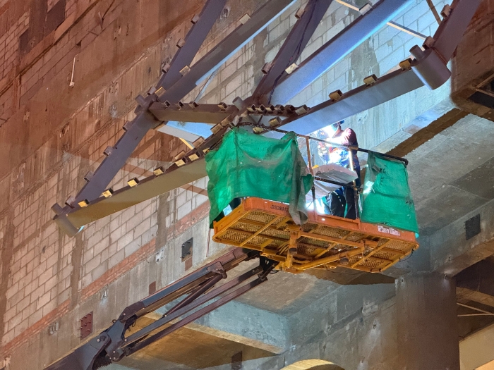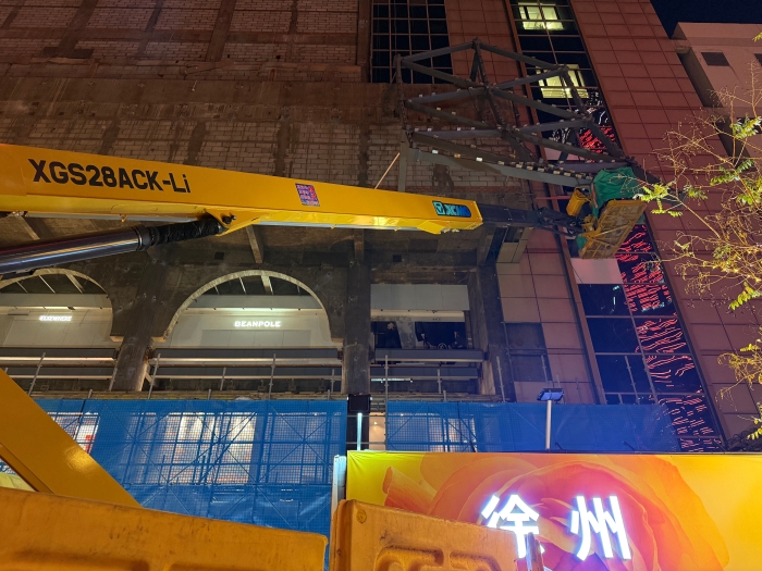 徐工XGS28ACK-Li直臂式高空作業平臺環保靜音,純鋰電動力系統實現零排放、低噪音,讓商場施工期間仍能正常營業;緊湊的車身設計讓車輛在商場有限空間內自如專場;臂架精準定位,使工作籃能夠精準避開幕墻構件,抵達最佳焊接位置,大幅提升施工效率,獲得現場施工人員一致好評。