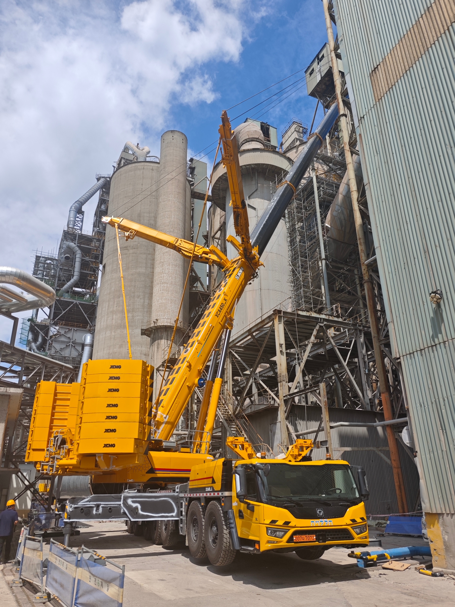 在現(xiàn)代大型水泥廠的建設(shè)與升級(jí)改造中,設(shè)備安裝往往是決定工程進(jìn)度的關(guān)鍵環(huán)節(jié)。近日,在某現(xiàn)代化水泥廠施工現(xiàn)場(chǎng),一臺(tái)徐工XCA450_K全地面起重機(jī)憑借其卓越性能,成功完成了一項(xiàng)超起工況下的高難度吊裝任務(wù),為項(xiàng)目的順利推進(jìn)提供了堅(jiān)實(shí)保障。