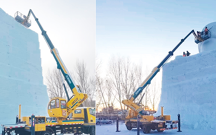從松花江畔到齊齊哈爾,徐工高空作業車的身影穿梭在東北的冰雪之中。正是有了它的保駕護航,巨型雪人如期與游客見面,為火爆的東北旅游再添一把“熱柴”。