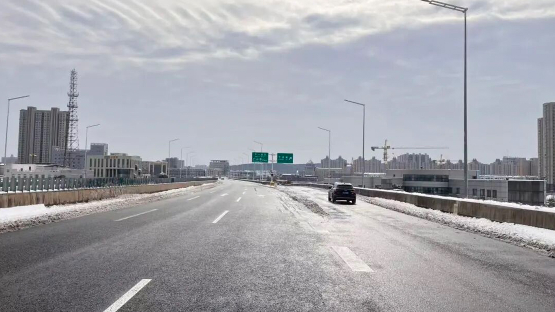 城市道路一片白雪皚皚