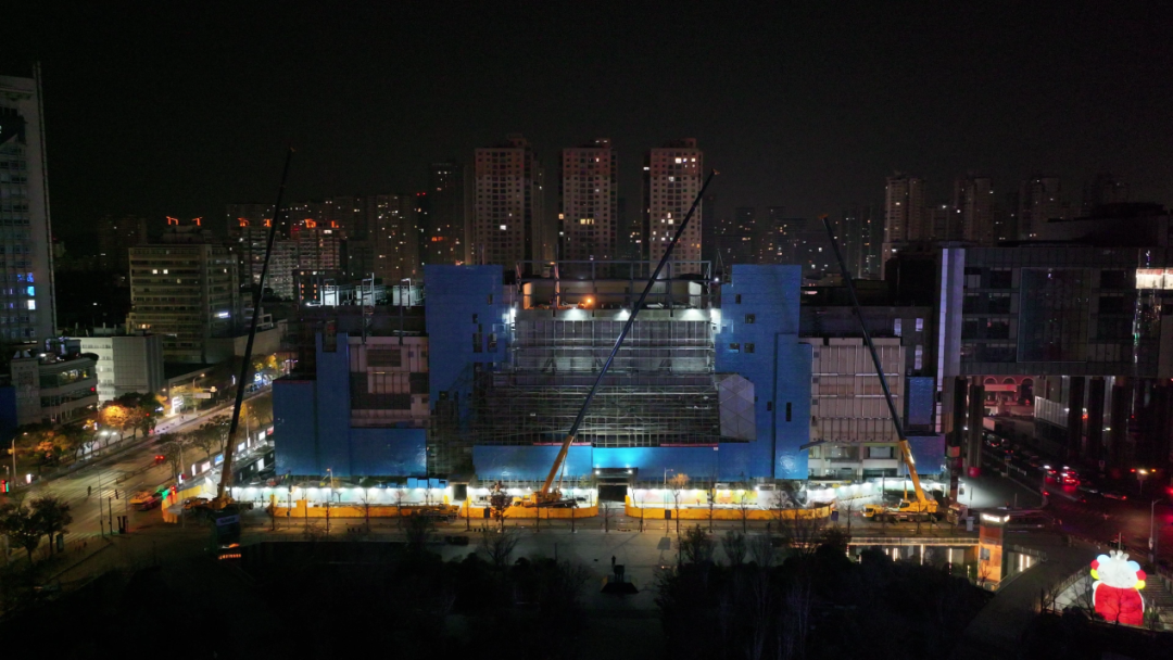 在徐州市中心,金鷹國際購物中心A座正在進行樓體改造,不僅加蓋一整層,更在設計上延續了B座外立面的風格,這座地標性建筑即將煥然一新。
