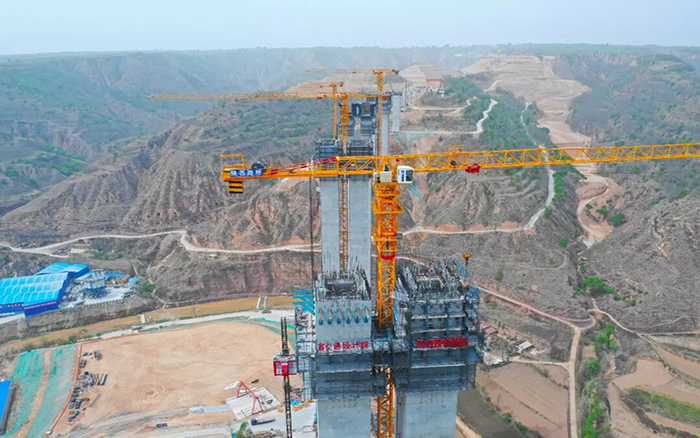 面對“地勢高、溝壑深、施工難、工期緊”等一系列施工難題,5臺XCP330HG(7525-16),4臺XGT6515-10屹立山間,助力陜西路橋打造國內在建同類型主墩最高橋梁工程——支黨河特大橋,再一次刷新路橋建設的紀錄。
