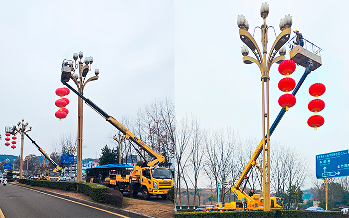 穩定性能決定燈籠懸掛的精準美觀。徐工高空車憑借精湛穩定性,大幅削減高空晃動,實現平穩升降,操作人員可精準調整燈籠角度,避免磕碰,讓紅燈籠成為城市靚麗的新春點綴。高效作業更助力搶抓工期,其車身緊湊、轉場便捷,搭配便捷操作模式,大幅縮短施工時間、節省人力,確保燈籠按時懸掛到位。