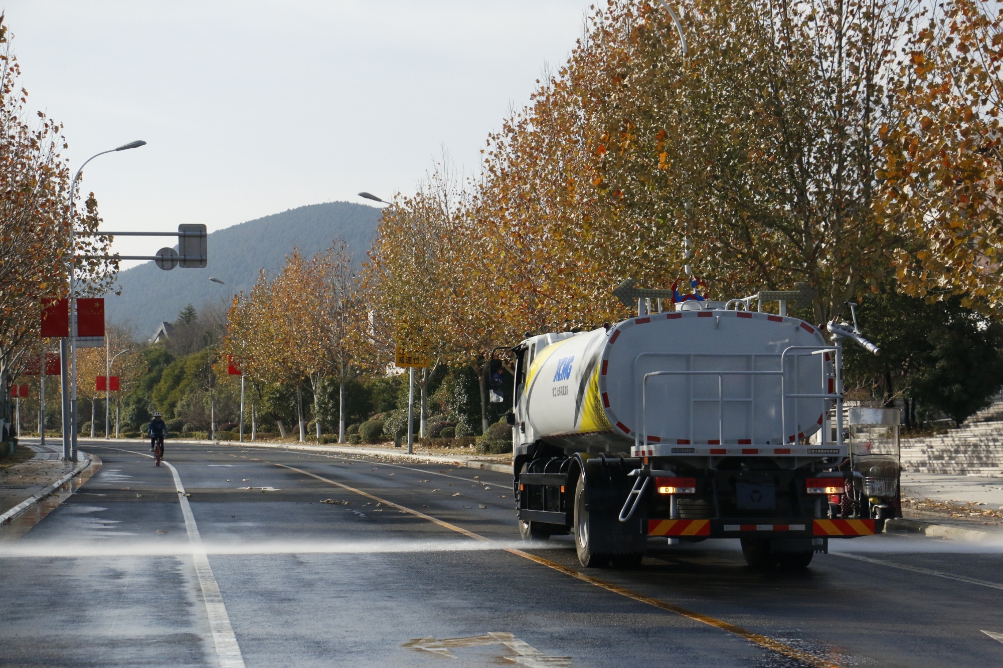 徐工灑水車在珠山路,開啟高效作業(yè)模式。以10km/h的速度勻速行駛,強勁的水流精準覆蓋路面,有效抑制揚塵。車輛操作靈活,作業(yè)過程平穩(wěn)有序,為珠山路營造了清潔、舒適的環(huán)境。