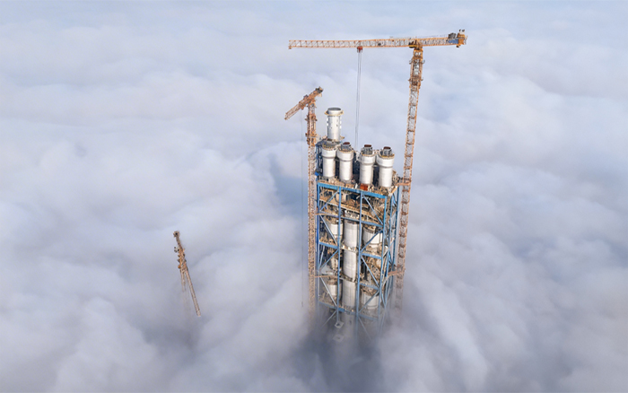 為此,四臺徐工塔機分工明確、穿插有序,以卓越的抗風設計與毫秒級微動控制技術,在200米高空實現吊裝的精準就位,為同步焊接作業構筑起穩固的安全平臺,成功為項目提前60天竣工提供設備基礎。