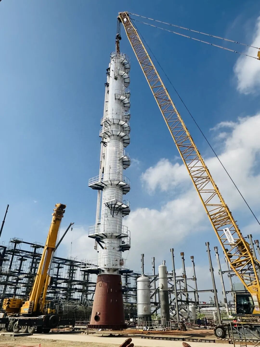 挑戰突破:擎起石化“巨無霸”此次吊裝的C-201苯塔為裝置最高核心重器,體型龐大、安裝精度要求極高。面對場地限制、設備高聳易受風載影響等難題,徐工XGC400以超凡性能迎難而上: