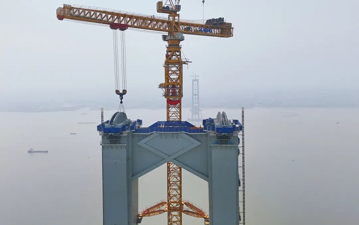 在此之前,這臺超級塔機已先后在兩大世界級超級工程中經受嚴苛考驗——世界最大跨度公鐵兩用斜拉橋常泰長江大橋和世界最大跨度三塔斜拉橋巢馬城際鐵路馬鞍山公鐵兩用長江大橋,贏得了“技術硬、就位準、智能化、效益高”的高度贊譽。